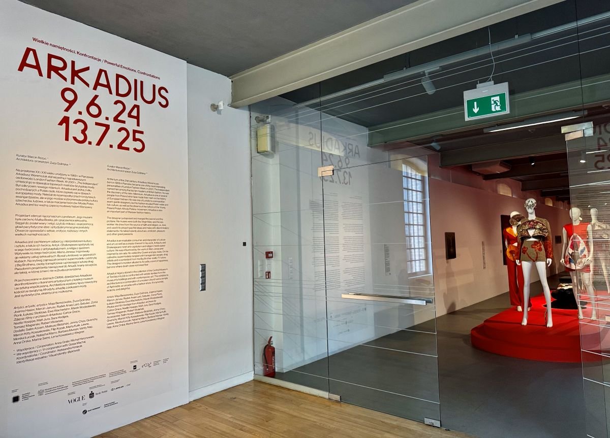 Przechowywane w zbiorach CMWŁ dziedzictwo Arkadiusa skonfrontowano z tkaninami artystycznym z kolekcji muzeum i ze sztuką współczesną innych artystów. Architektura wystawy łączy nowożytny kościół ze świątynią Afrodyty, arkadię z pokazem mody. Jest synkretyczna, eklektyczna i rozkoszna.