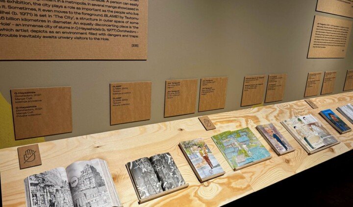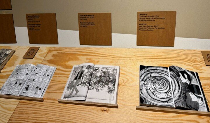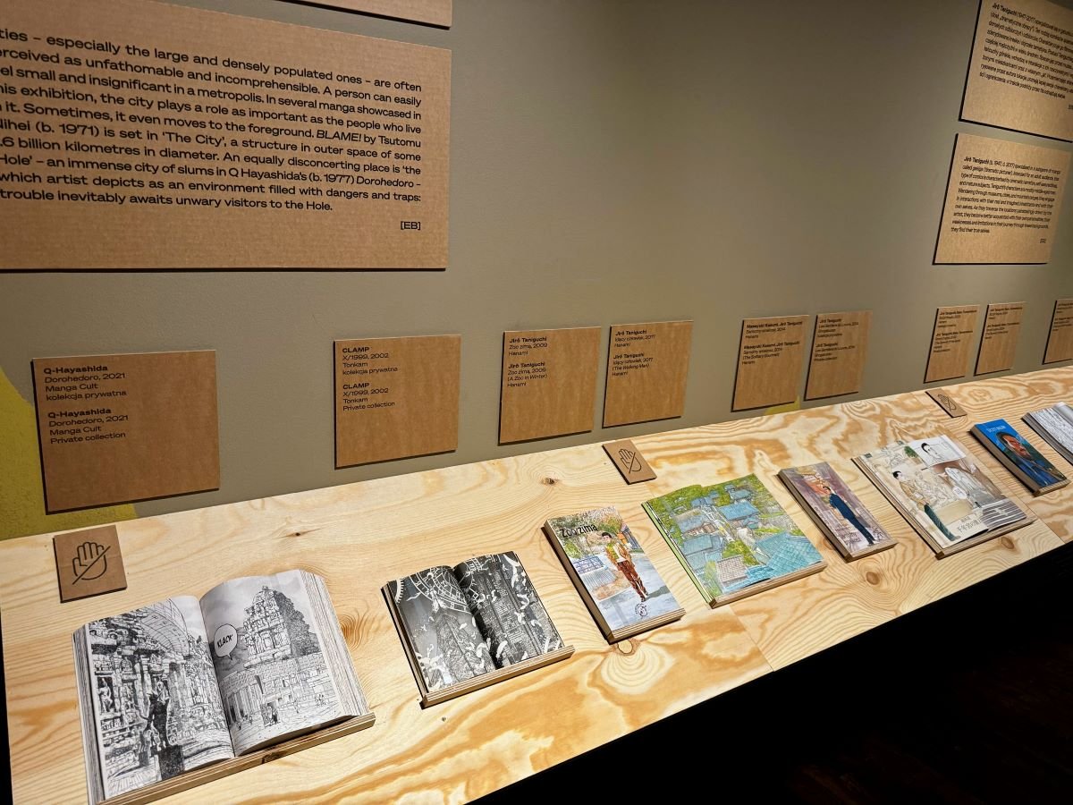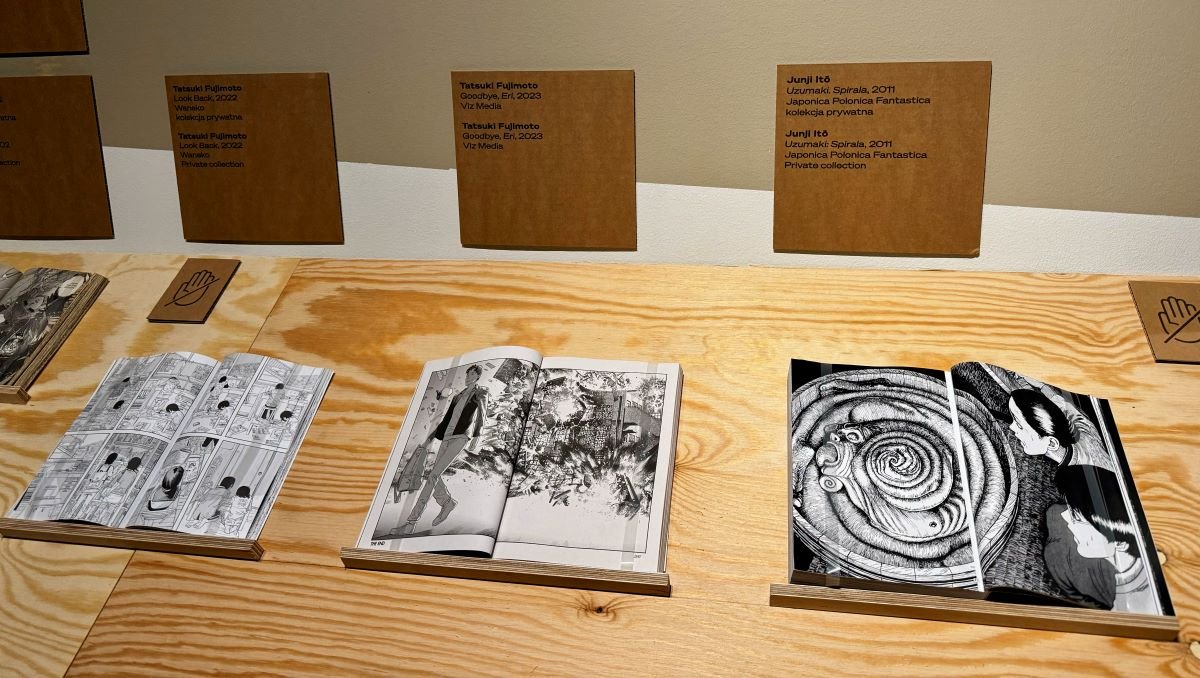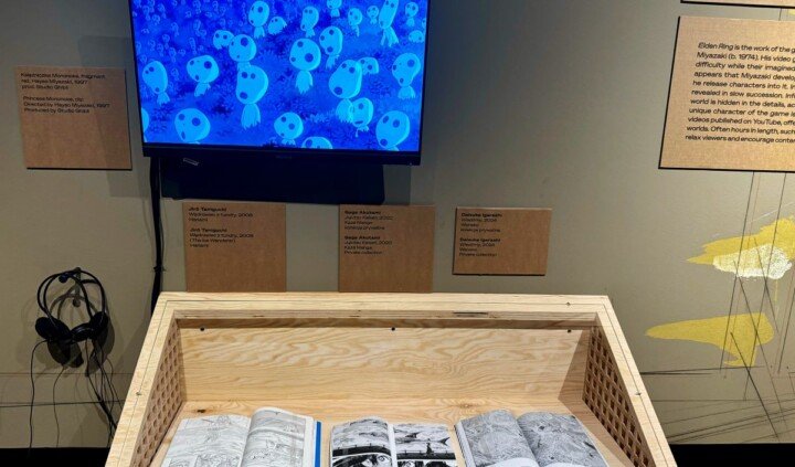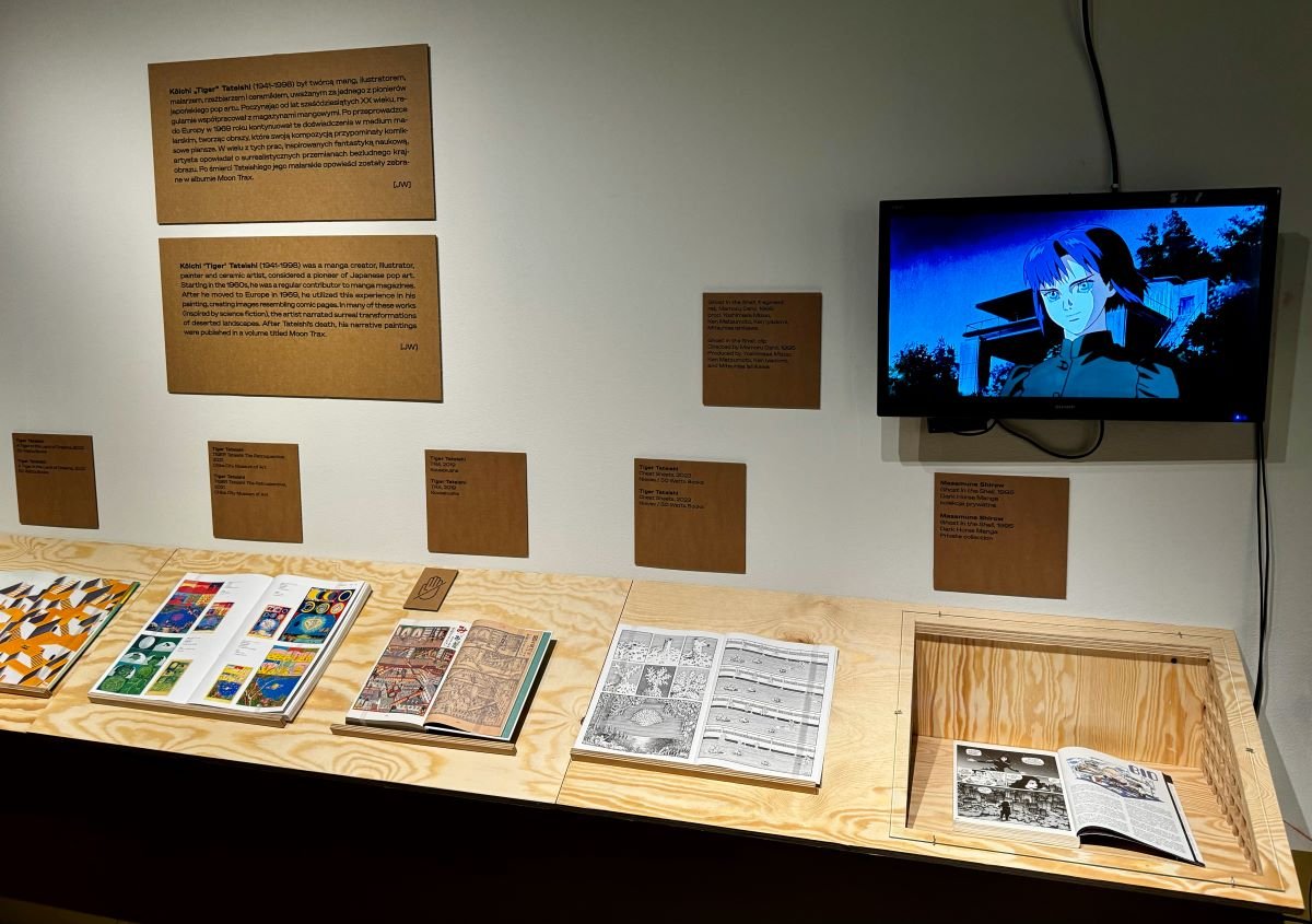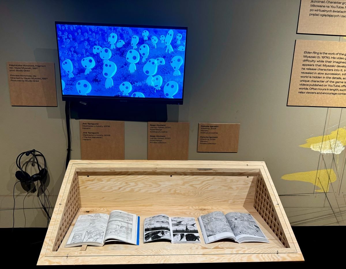 Na wystawie można zobaczyć m.in. reprodukcje teł wykorzystanych w takich kultowych anime jak Ghost in the Shell, Akira, Podniebna poczta Kiki, drzeworyty Hokusaia czy komiksy Yuichiego Yokoyamy, Tigera Tateishiego i Satoshiego Kona, elementy gier studiów FromSoftware i Kojima Productions.