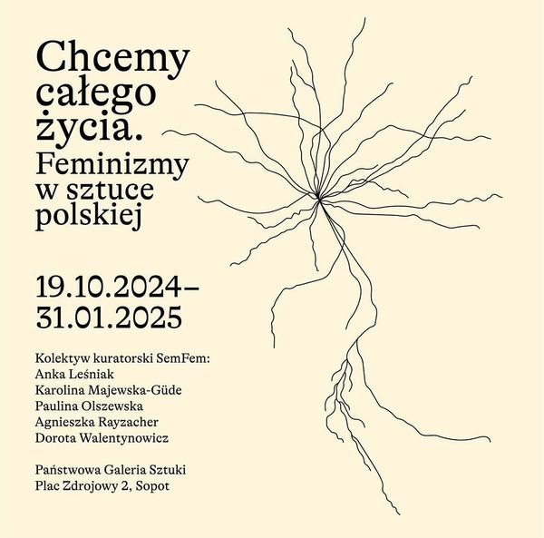 Chcemy całego życia. Feminizmy w sztuce polskiej prezentuje sztukę stanowiącą materialny dowód międzypokoleniowej solidarności feministycznej. Jej tytuł odwołuje się do postulatu całego życia wyrażonego przez Zofię Nałkowską w wystąpieniu wygłoszonym w 1907 roku na I Zjeździe Kobiet. Poprzez odniesienia do współczesnych emancypacyjnych praktyk artystycznych, ekspozycja interpretuje całe życie jako współistnienie, wymianę i współzależność. Całe życie oznacza zwrot w stronę etyki troski i nowej wspólnoty, w której obowiązują zasady wzajemności. Jest też wyjściem poza patriarchalny kult postępu i neoliberalne podporządkowanie wszelkich form życia i wiedzy logice rynku.