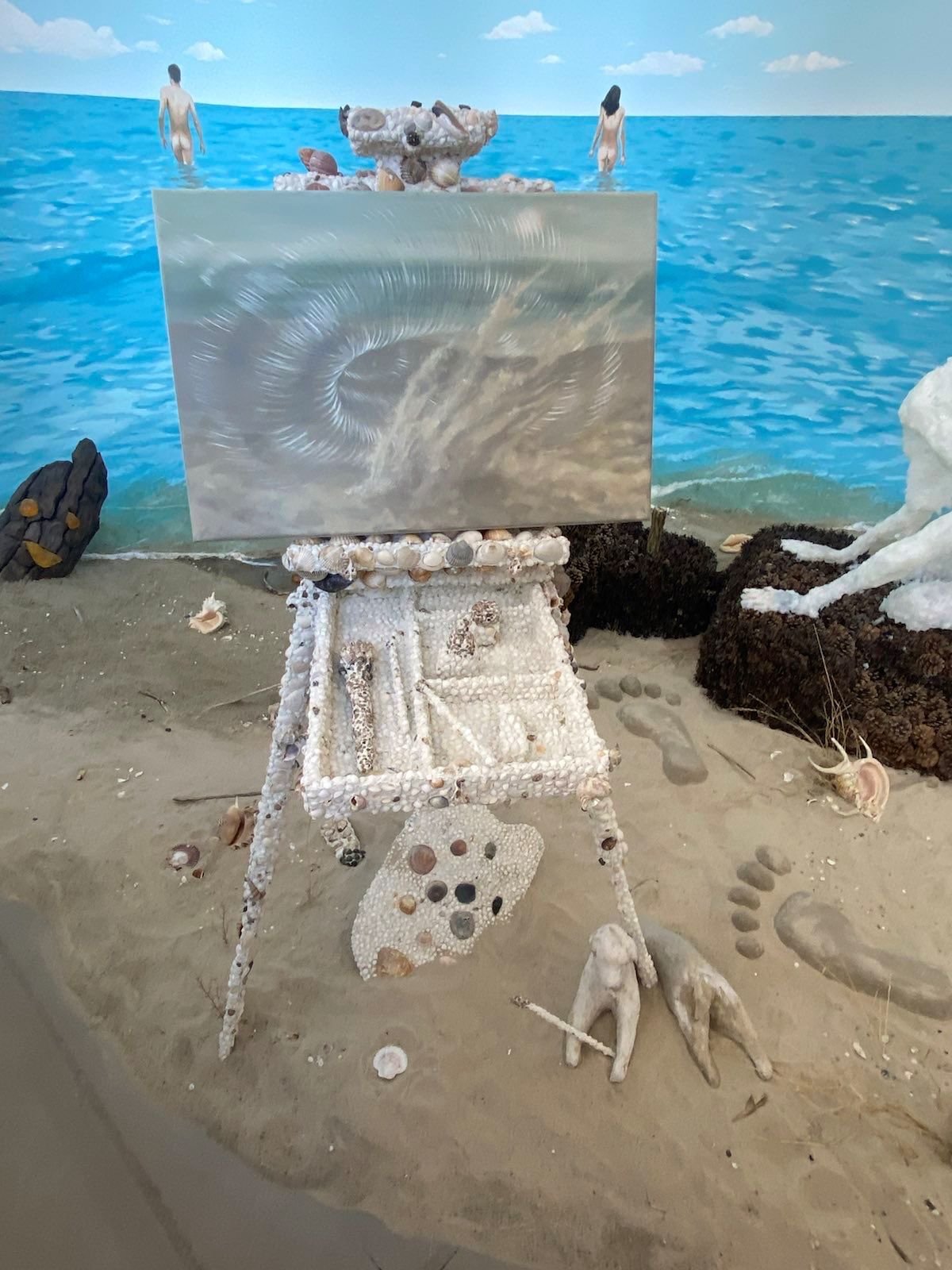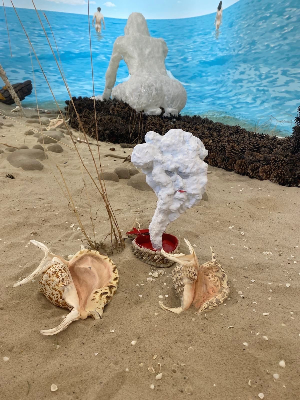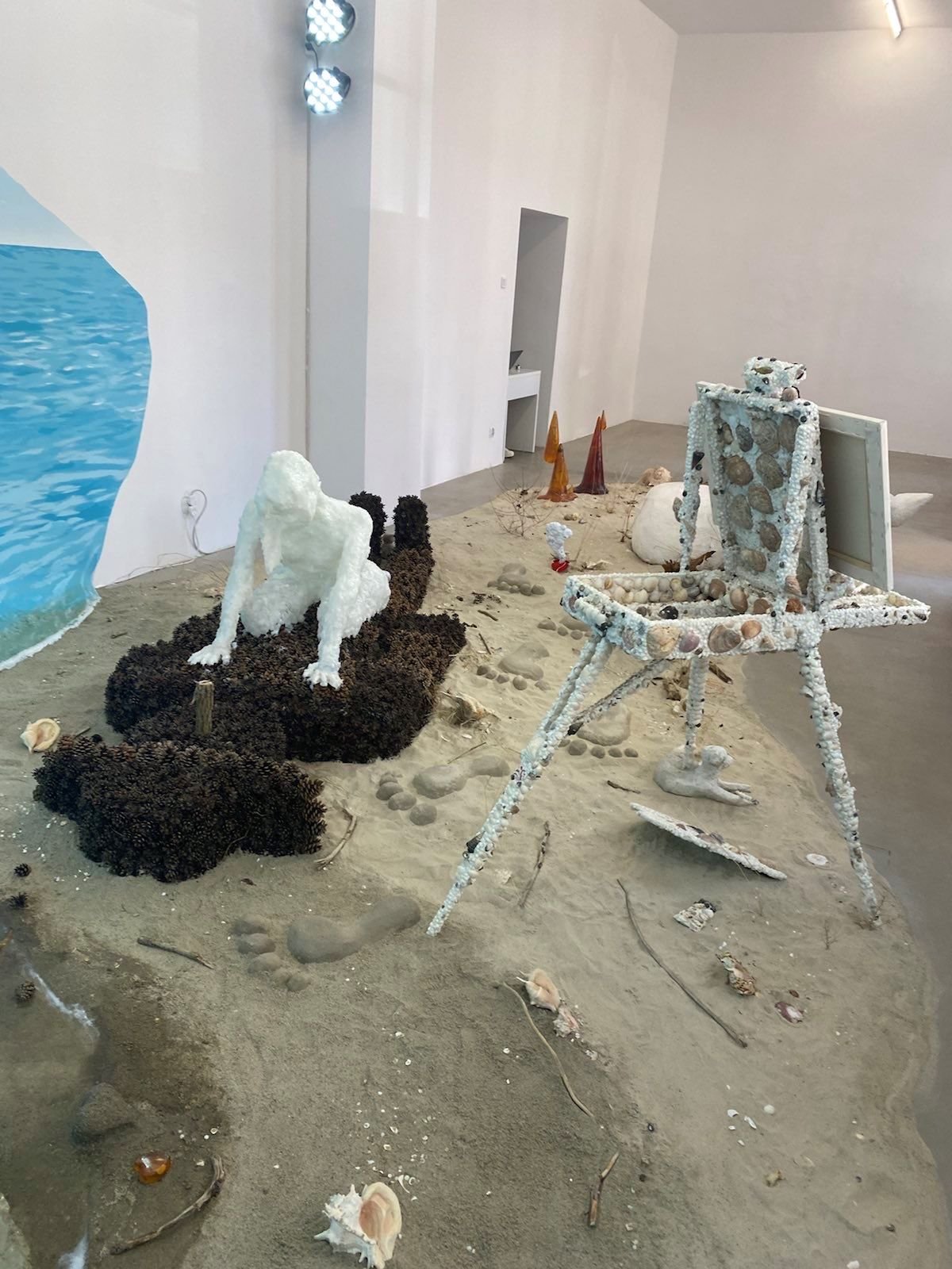 Nostalgiczny pejzaż zbudowany jest z elementów ze zbiorowej pamięci dotyczącej polskiego morza: zachodów słońca, bursztynów, muszelek, szyszek, piany morskiej, mew, odcisków stóp na piasku czy ławeczki miłości. Wyobrażony kurort został jednak opuszczony przez ludzi, a przedmioty w nim nagromadzone zaczynają wieść postludzkie życie. Podobna sytuacja przydarza się nadmorskim miejscowościom co roku, kiedy pod koniec każdego turnusu zakochani wczasowicze muszą wracać do swoich codzienności. Ich wspomnienia i czas wakacji, rządzący się własnymi prawami, zaklęty zostaje w pamiątkach, kilku zdjęciach, czy nuconej piosence. Praca Walendzik i Pakosz to także wyobrażenie na temat końca ludzkiego świata spowodowanego nieuchronną katastrofą.