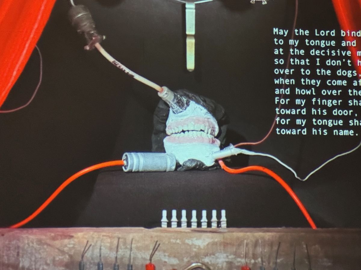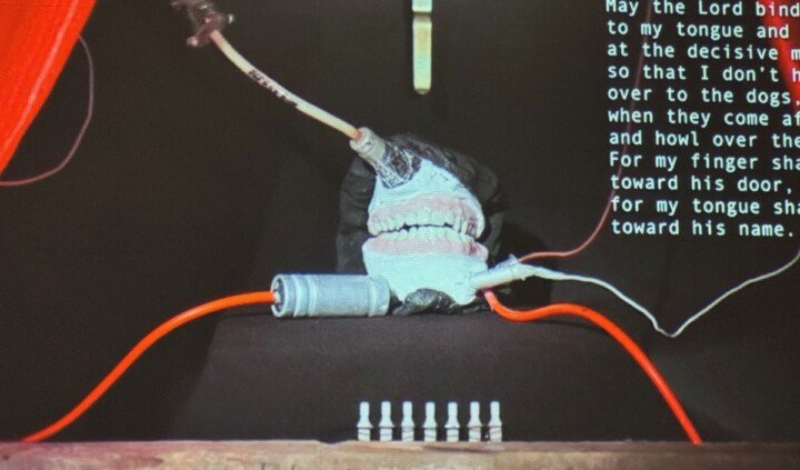 Wystawa zawiera elementy filmowej scenografii – fragmenty wstrząsającego świata stworzonego przez samą artystkę – które umożliwiają odwiedzającym fizyczne zanurzenie się w atmosferze The Lemberg Machine.