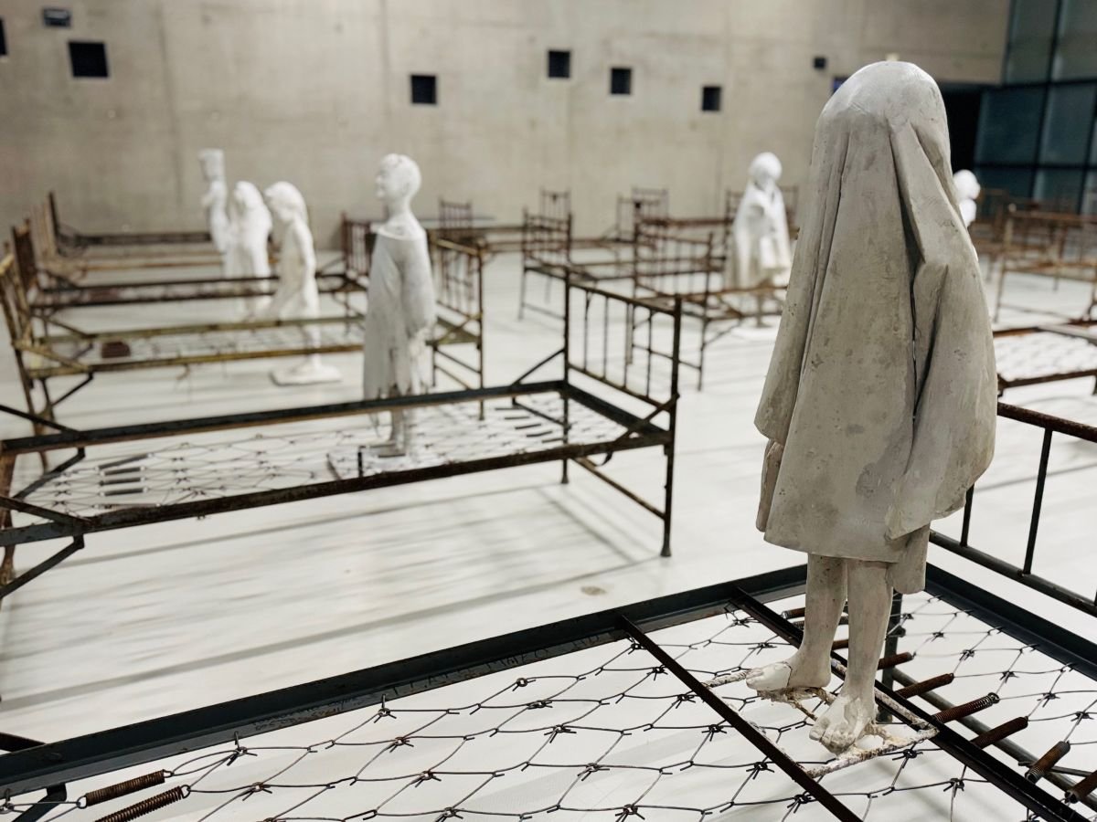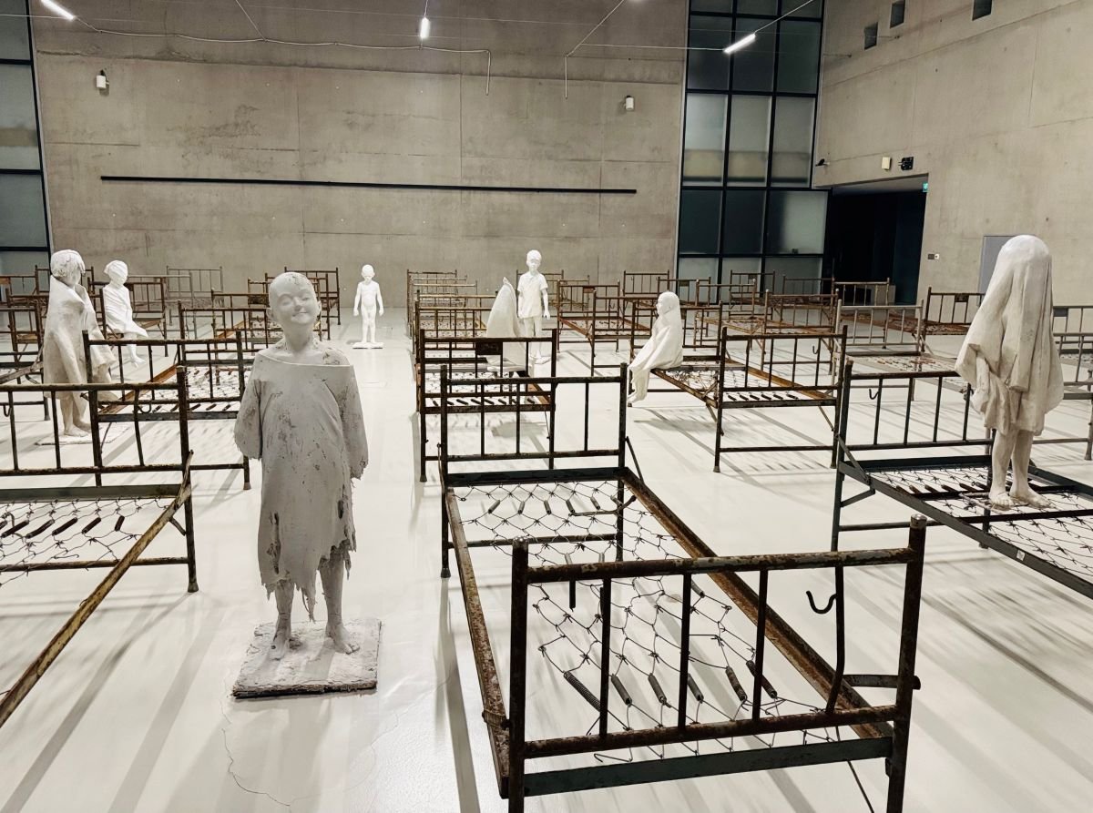 Pośrodku artysta umieścił kilkanaście gipsowych rzeźb przedstawiających dzieci. Ta grupa postaci zebrana jest w samym centrum, tam, gdzie najjaśniej i wydawać by się mogło najbezpieczniej – niczym owady zwabione do światła. Widok tej sceny naturalnie wymusza na nas pytania: Co to za miejsce? Kim są te dzieci? Co się tu wydarzyło? Dlaczego zostały tutaj same?