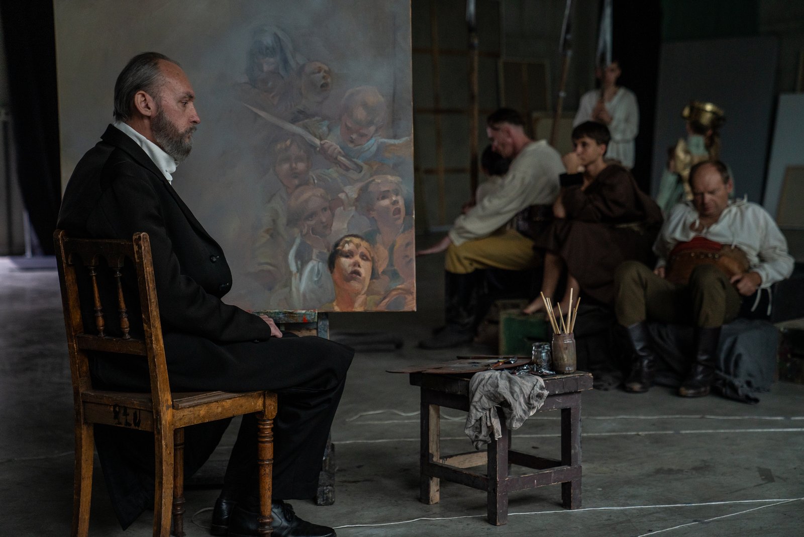 Wizyjne postaci wychodzą z okna pracowni Malczewskiego, przedstawionej na obrazie Melancholia,