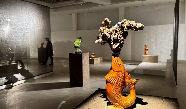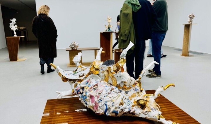 Poprzez codzienne artefakty Justyna Smoleń bada historyczne i współczesne fantazmaty, które w kulturze i sztuce, także użytkowej, przybierają formę wyidealizowanych obrazów miłości, sukcesu czy narodowej tożsamości. Artystka przygląda się figurkom powstałym w krajach komunistycznych w czasach transformacji, gdy szarą rzeczywistość i monotonię meblościanek urozmaicały wizerunki baletnic, egzotycznych zwierząt czy sielankowej miłości. Z porcelanowych destruktów – na zasadzie gry skojarzeń i zabawy – tworzy hybrydyczne, groteskowe formy, które w krytyczny sposób odnoszą się do sentymentalnych wyobrażeń o romantycznych relacjach międzyludzkich i międzygatunkowych, konsumpcjonizmu oraz podejścia do ciała i płci. Natomiast w cyklu Lawa, pełnym organicznych form połączonych z ciężką kamionkową ceramiką, artystka przygląda się bulgoczącym, mrocznym stronom narodowej podświadomości, badając wątki związane z sarmatyzmem i kulturą jarmarczno-ludową. Figury przaśnych krasnali, rubasznych harnasiów, górników czy scen polowań służą jej do dekonstruowania narodowych, patriarchalnych mitów. Wystawa Kruche sny ukazuje napięcie między powracającymi reakcyjnymi ideami, a próbami ich przeobrażenia i płynnego kreowania nowych wizji rzeczywistości.