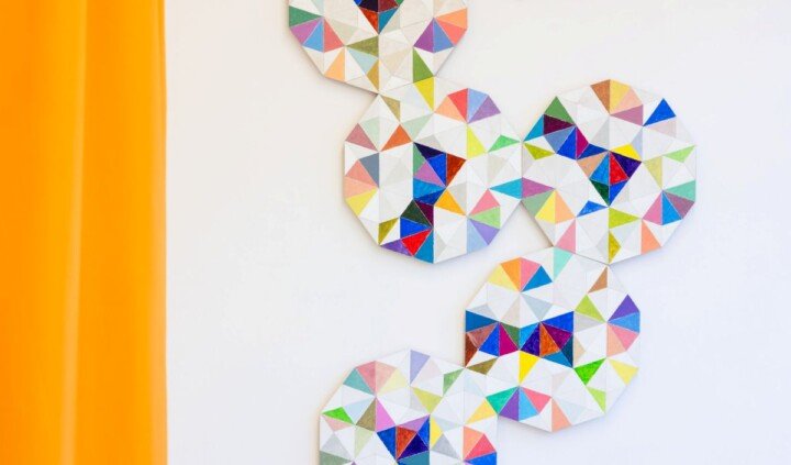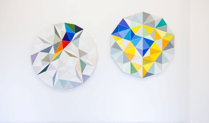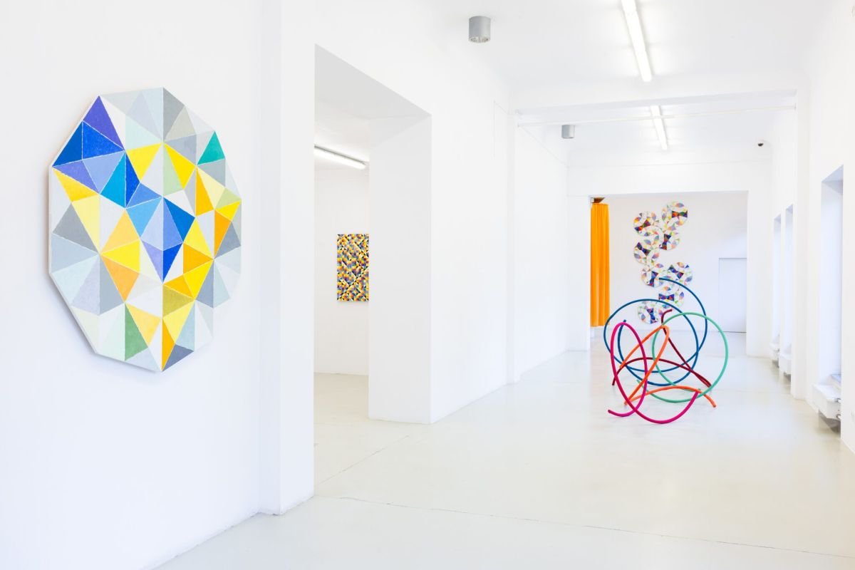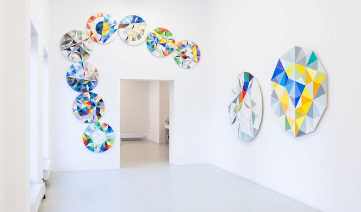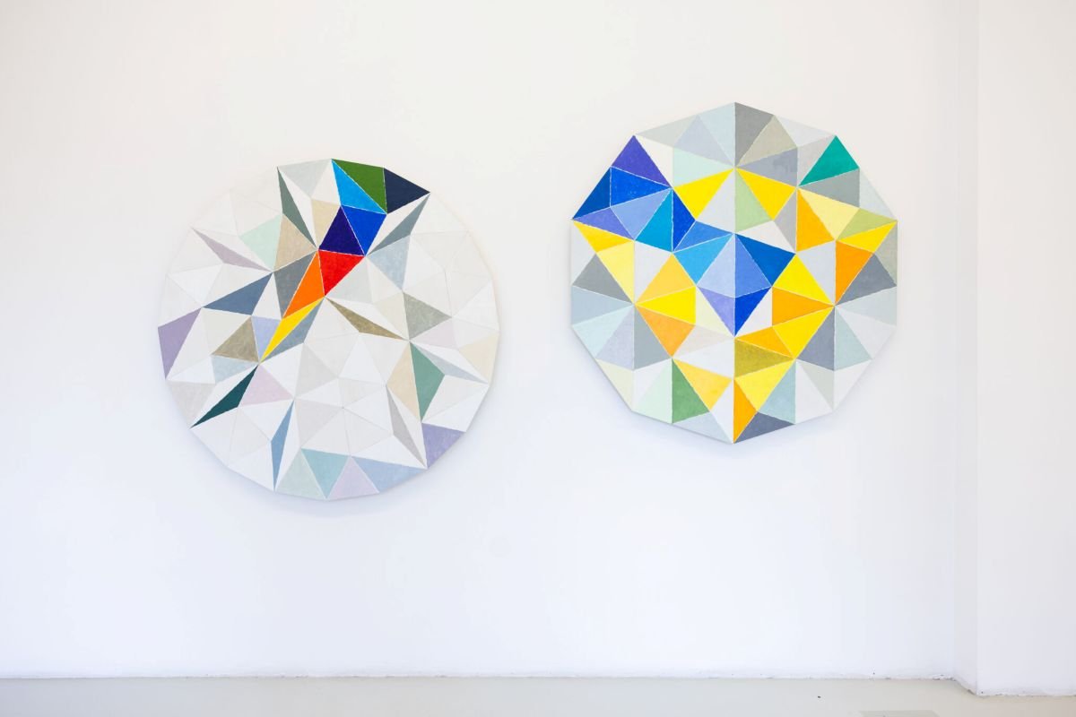 Odwrotnie zdaje się działać Krzysztof Wróblewski – obraz stanowi dla niego podstawową formę opisywania świata, a ich natłok postrzega jako zbiór otrzymywanych od otoczenia komunikatów. W prezentowanych na wystawie pracach, przygotowanych z myślą o niej, przenosi doświadczenie wzrokowe na odwzorowywanie rzeczywistości obrazem. Widzenie przestrzeni przekłada na sekwencje geometrycznych figur – uzyskiwane w ten sposób wzory zamyka w matematycznych strukturach. Przybierają one modułowe reliefowe formy budowane z kombinacji dziesięcio i dwudziestoboków. Najnowsze dzieła artysty to nie tylko kontynuacja jego własnej praktyki, ale odpowiedź na propozycje Alicji Bielawskiej.