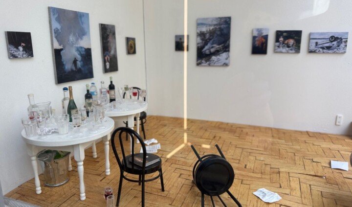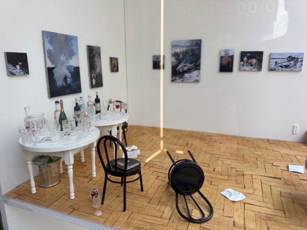 Wystawa Karola Palczaka Krasz łączy zauroczenie z brutalnością zderzenia – w świecie, gdzie poimprezowa cisza wciąż drży od niewypowiedzianych napięć. Tytuł spolszcza dwa angielskie słowa: crush (zauroczenie drugą osobą) i crash (katastrofa, wypadek), co otwiera wielowymiarową opowieść o męskich relacjach, impulsach i emocjonalnych zwarciach.