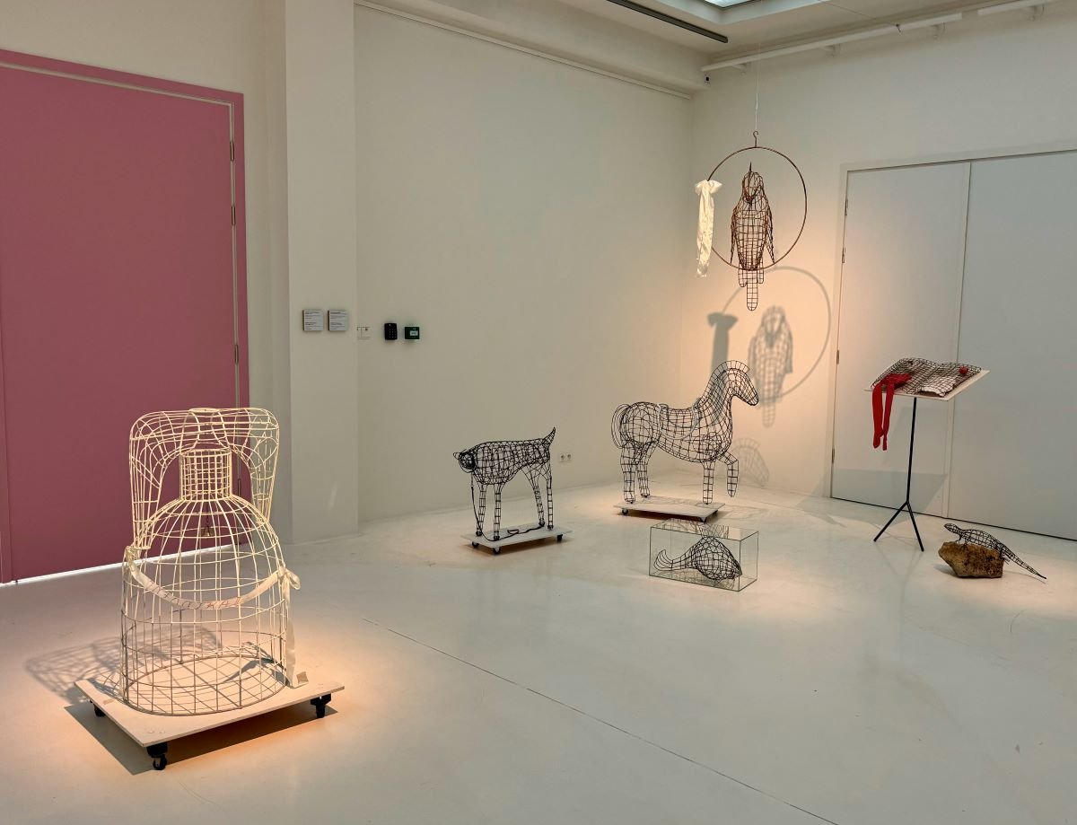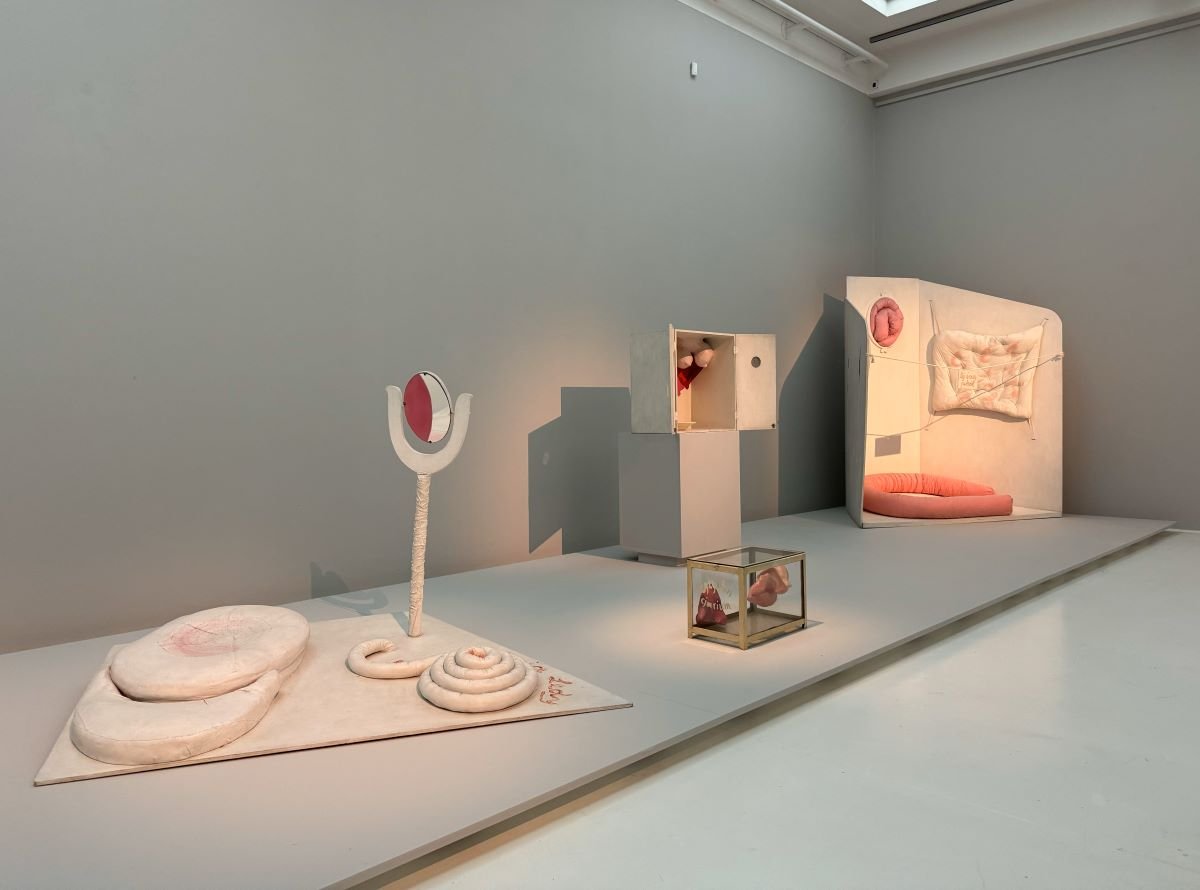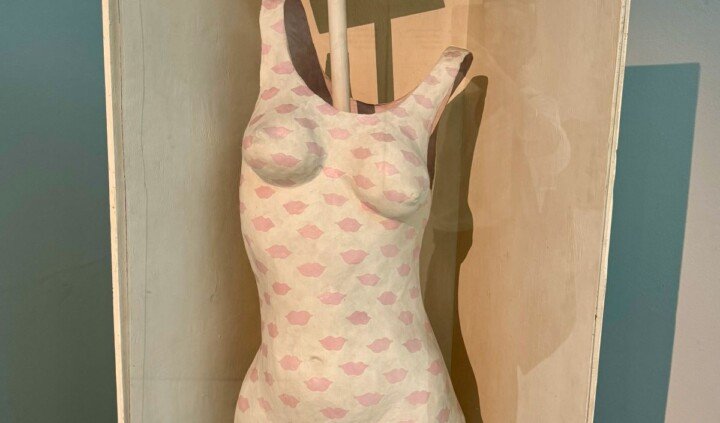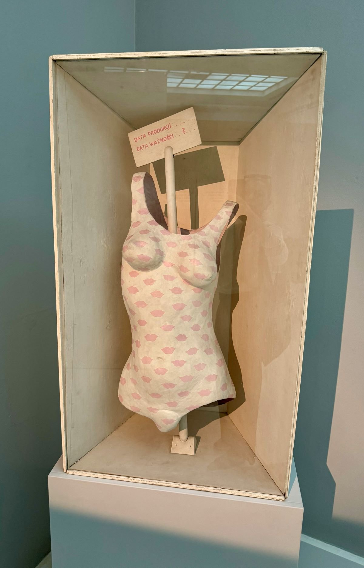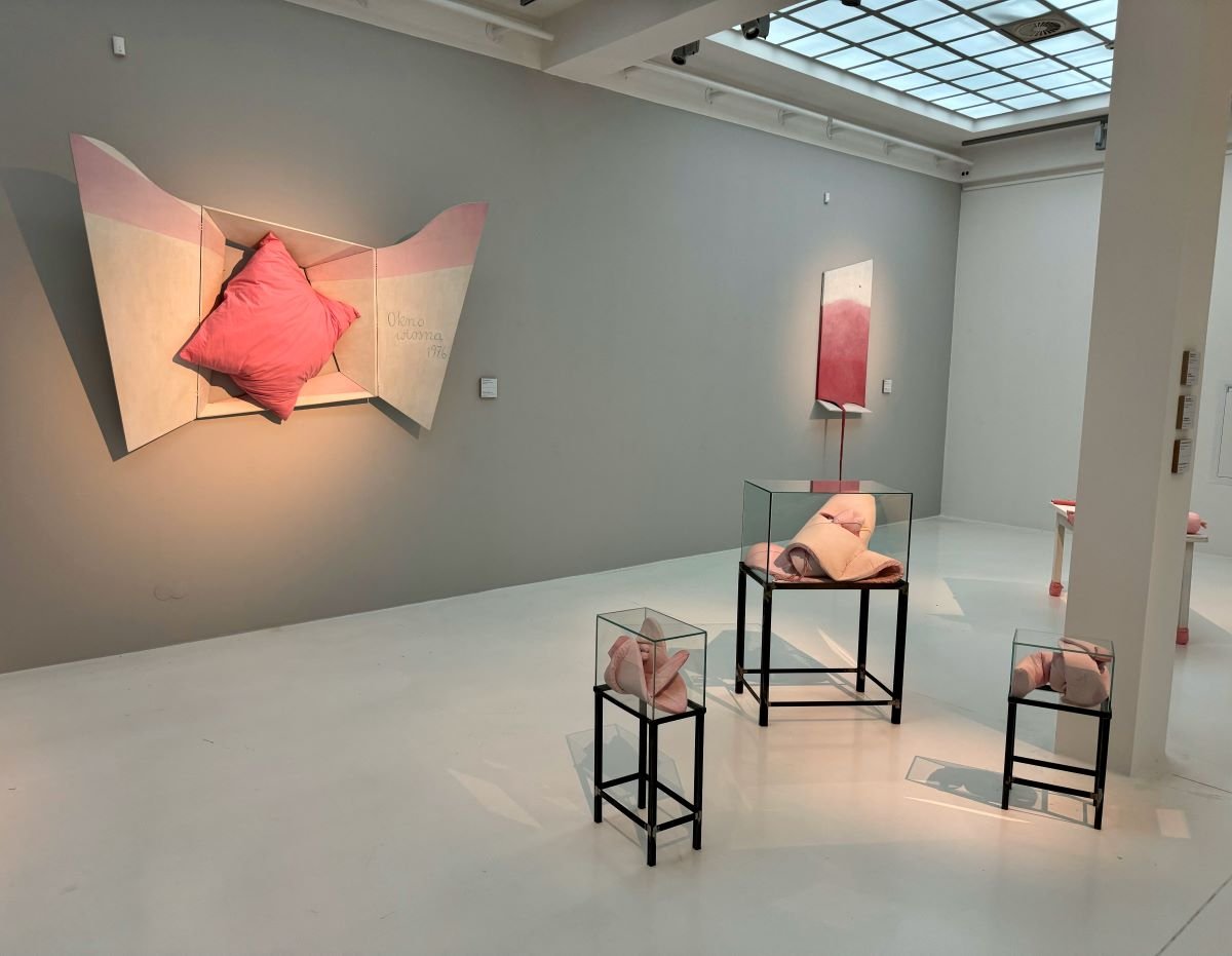 Na wystawie nie zabrakło prac z najsłynniejszej serii Gorsety (1965–1967). Lekkie rzeźby artystka wykonywała z masy papierowej, drewna oraz tkanin ze sznureczkami i sprzączkami. Prace podwieszała pod sufitem lub ustawiała jak część umeblowania. Wykorzystując w Gorsetach papier mâché, delikatne materiały oraz domową technikę niewymagającą rzeźbiarskiego zaplecza, Pinińska-Bereś po raz kolejny skierowała skojarzenia widza na sferę codzienności.