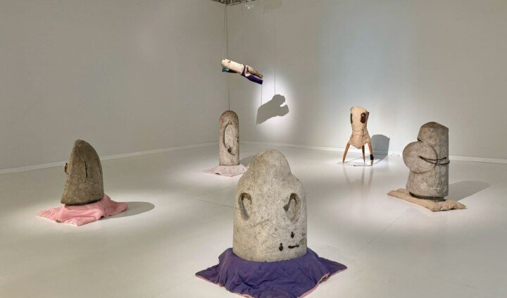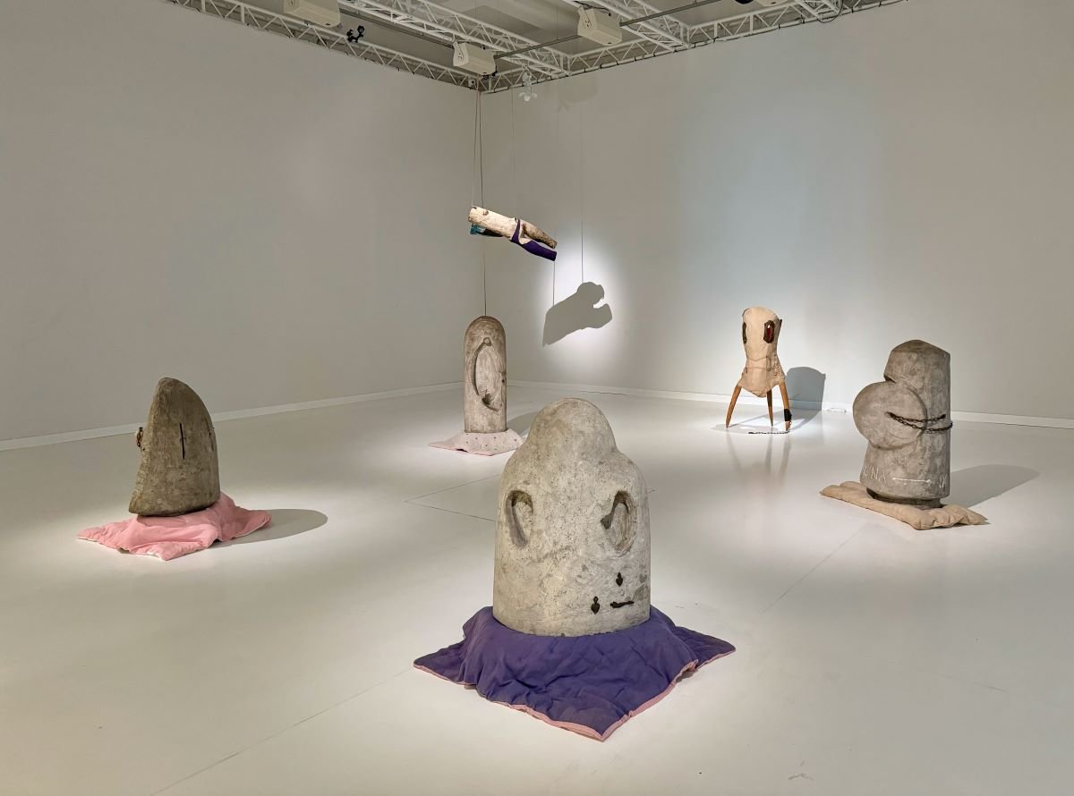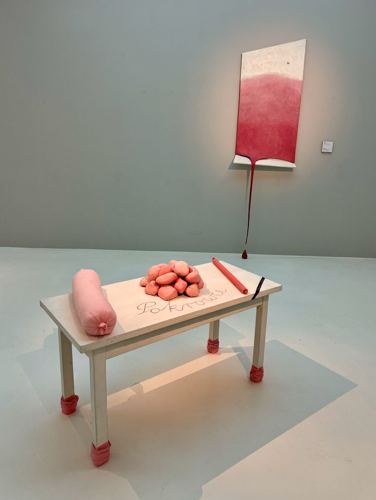 Widzowie zobaczyć mogą znaczące prace z tego okresu. Wśród nich cementową Rotundę z wotami (1961), której postument artystka okryła kołderką, czy kolejne masywne rzeźby z serii Rotundy (1960–1963), w których już całkowicie zrezygnowała z cokołu, zastępując go poduszkami lub pikowanymi kołdrami kładzionymi bezpośrednio na ziemi pod ciężkimi obiektami. Tymi zabiegami Maria Pinińska-Bereś dokonała celowego udomowienia rzeźbiarskiej bryły, która sprowadzona na ziemię i osadzona na miękkiej tkaninie stała się elementem bliskim widza. Ponadto serią Rotundy wykreowała dobitny obraz statusu kobiety w patriarchalnej kulturze, która z jednej strony wynosi kobiecość na ołtarze, jednocześnie wtłaczając ją w narzucone schematy płciowe.