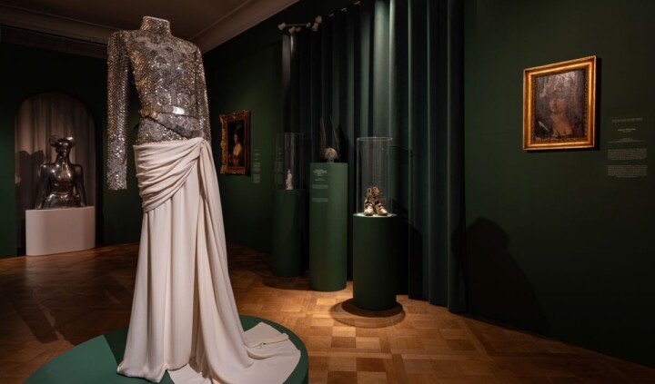 Obrazy Marcella Bacciarellego i Bartłomieja Strobla obok porcelanowych figurek, ceremonialnych mieczy, pasów kontuszowych, strojów haute couture Yves’a Saint Laurenta i tęczowych kostiumów Thierry’ego Muglera. Na ekspozycji zgromadzono około 250 różnorodnych obiektów z różnych epok – od XVI stulecia po współczesność. Są wśród nich cenne dzieła wypożyczone z muzeów krajowych i zagranicznych, w tym paryskiego Luwru, Muzeum Historii Sztuki w Wiedniu czy Galerii Obrazów Starych Mistrzów w Dreźnie, a także ze zbiorów prywatnych.