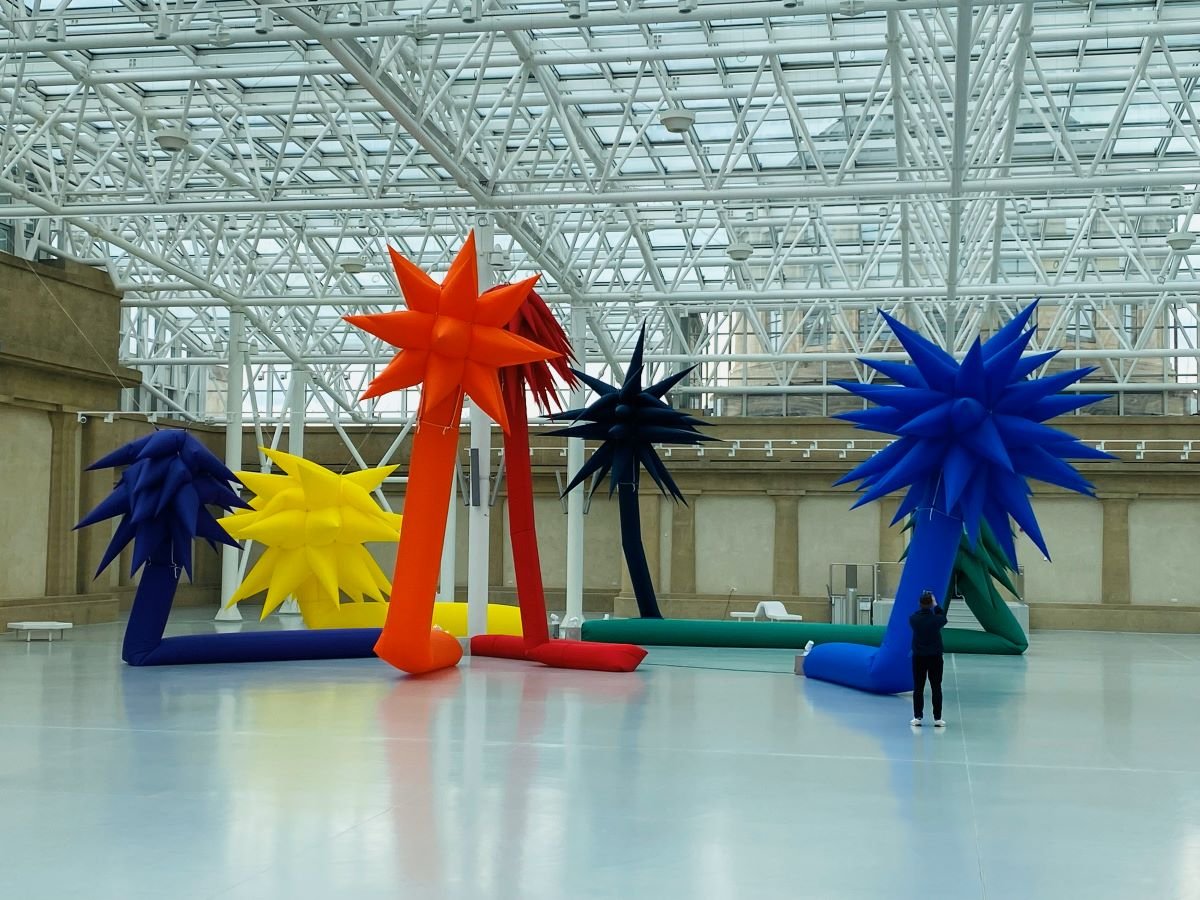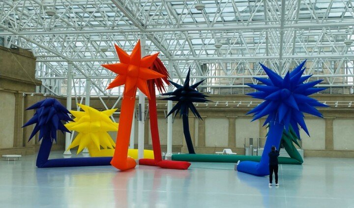 Długie gwiazdy (Langen Stars) to rzeźby, które pod wpływem napompowywania lub upuszczania powietrza unoszą się i zapadają, poruszając się w hipnotyzującym rytmie. Sprawiają wrażenie niemal żywych istot, które przyciągają odbiorcę, zachęcając do interakcji.
