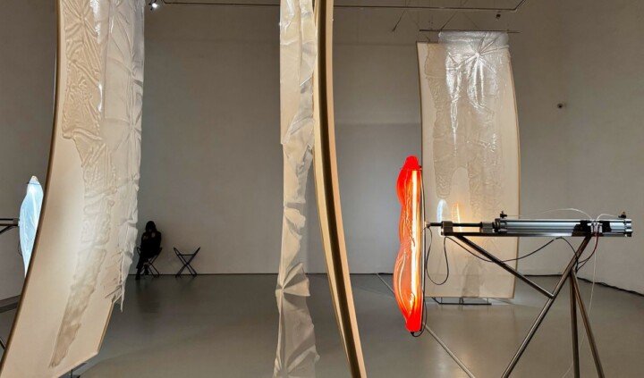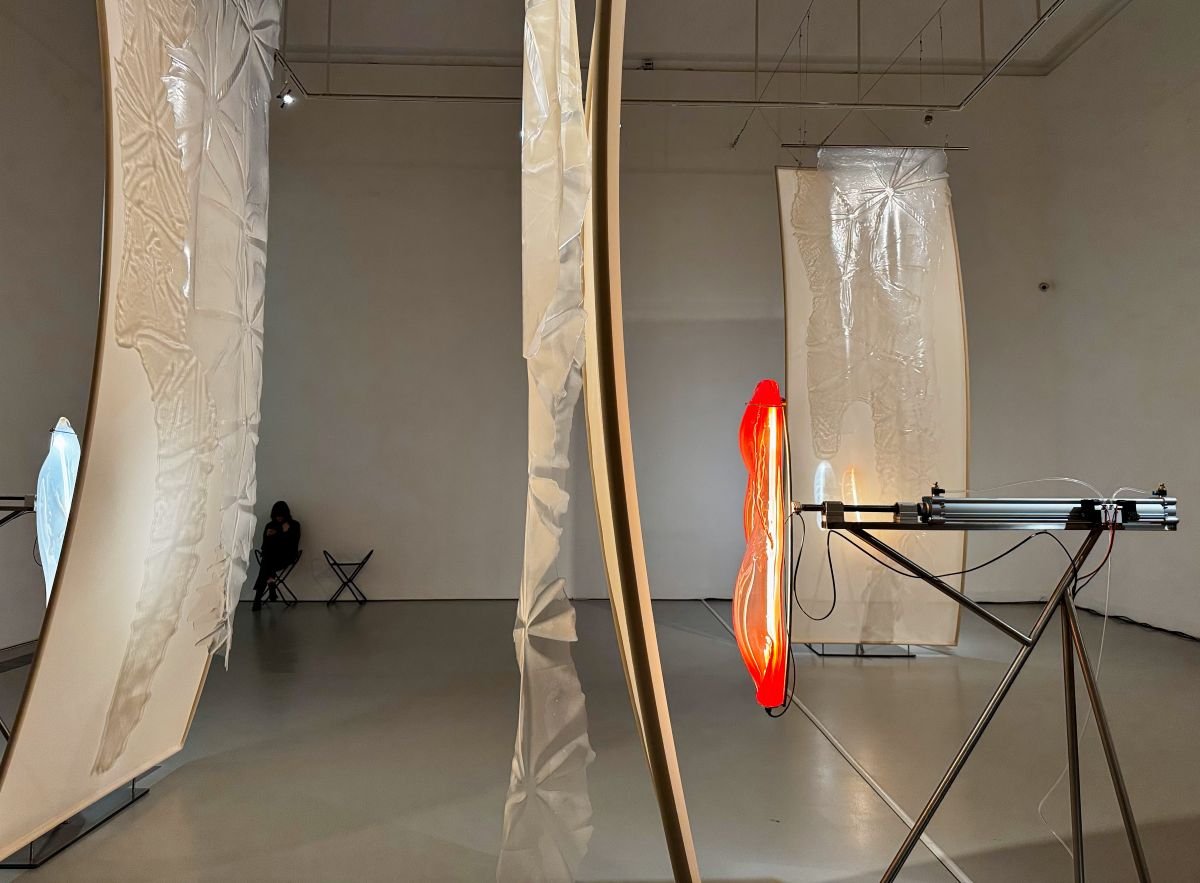 Pakui Hardware, duet tworzony przez Neringę Černiauskaitė i Ugniusa Gelgudę, prezentuje w Warszawie swoje nowe rzeźby kinetyczne. Wykonane ze stali, szkła, silikonu oraz elastycznej tkaniny poruszają się w jednostajnym rytmie, tworząc wrażenie autonomicznych podmiotów.