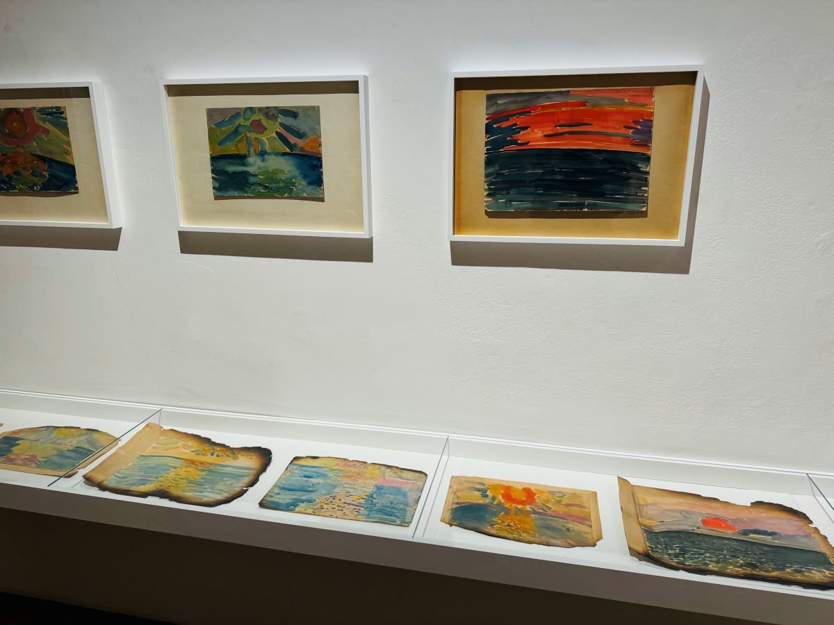 Widzenie słońca z zamkniętymi oczami, śledzenie powidoków pod powiekami, ale też widzenie ciałem, wejrzenie w siebie, kreowanie wizerunków kobiecej podmiotowości, śnienie, określają część wystawy w dolnej przestrzeni Galerii Studio. Znalazły się tam, nigdy do tej pory nieeksponowane, kompozycje powidokowe Orzechowskiej z sierpnia 1948 roku, jej autoportrety z lat 40. i 70. XX w., rysunkowe reprezentacje kobiecego ciała (ok. 1978–1979) osadzone w doznaniach bólu i przyjemności. Orzechowska, która współtworzyła artystyczny krąg Władysława Strzemińskiego w drugiej połowie lat 40. XX wieku, nie tylko przyjmowała wpływy, ale również aktywnie wpływała i inspirowała autora Teorii widzenia. Obok malarstwa powidokowego artystki prezentowane są jej tekstowe i wizualne notatki z wykładów Strzemińskiego (druga połowa lat 40.) w Państwowej Wyższej Szkole Sztuk Plastycznych w Łodzi. A także po raz pierwszy udostępnione widzom – rysunki niewielkich rozmiarów będące ilustracjami przemian sztuki XX wieku, które zapewne służyły autorowi Teorii widzenia do ilustrowania jego prelekcji.