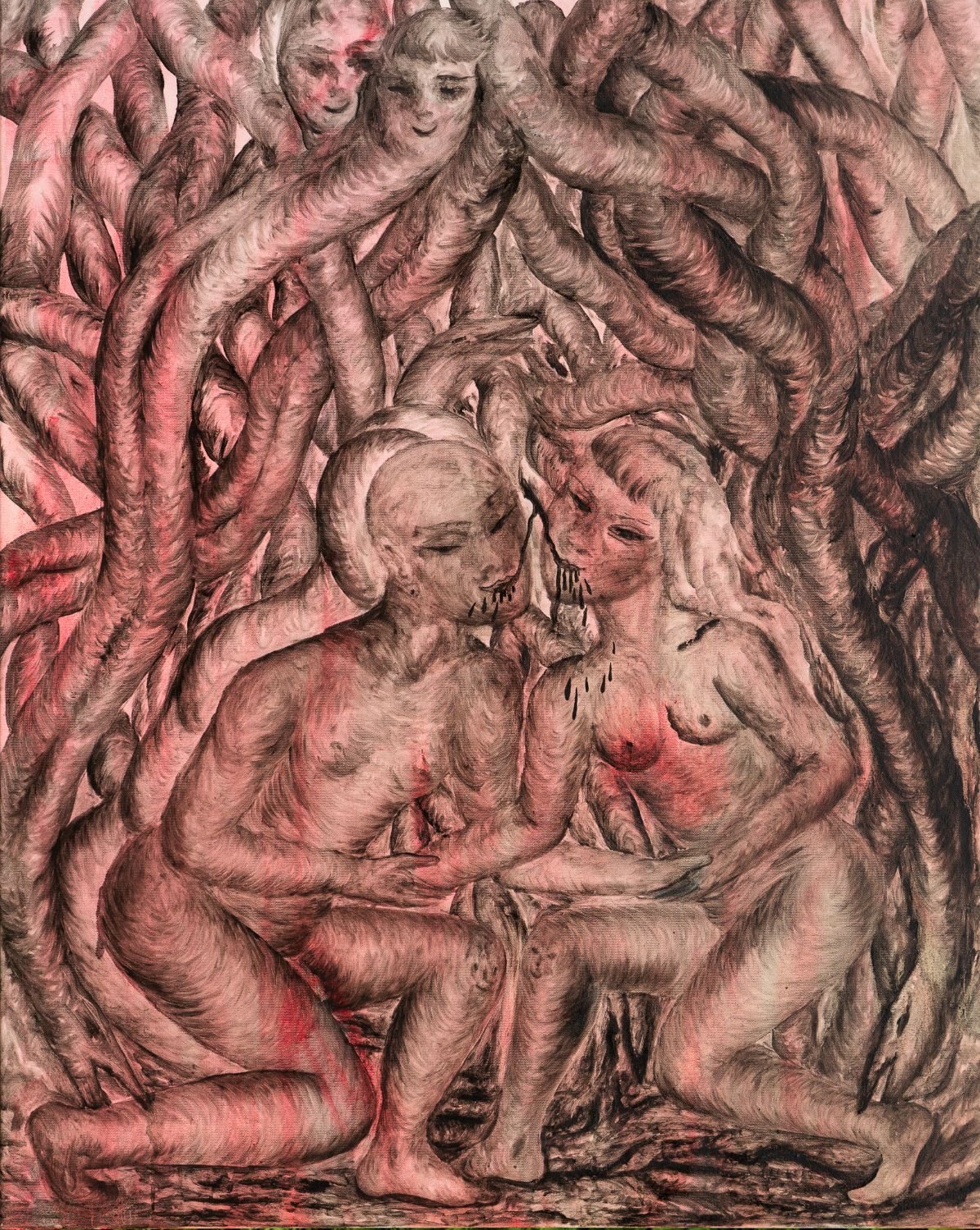 Wgląd w tworzone przez artystkę rozbudowane, wielowątkowe i kłębiące się od motywów kompozycje pozwala oderwać się od ziemi, od tu i teraz, i zanurzyć w przestrzenie nadzmysłowe, oniryczne i surrealne. Wyłaniające się z jej obrazów zawoalowane nawiązania do ikonografii chrześcijańskiej czerpią z inspiracji płynących zarówno z symboliki hagiograficznej czy pasyjnej, jak i wizerunków aniołów upadłych i diabolicznych hybryd zaludniających najniższe kręgi piekielne. Skłonność do podejmowania dialogu z konwencjami sztuki religijnej wynika w dużej mierze z deklarowanego przez artystkę zamiłowania do malarstwa średniowiecznego oraz przełomu gotyku i renesansu. Wyraźnie wpłynęli na nią jednak także artyści epok późniejszych, jak chociażby William Blake, czy Johann Heinrich Füssli, którzy w swoich płótnach wypowiadali się o sferze duchowej w sposób daleko nieoczywisty i indywidualny. W jej pracach da się dostrzec również echa alchemicznych rycin i ikonosfery ezoterycznej, a motywy wzięte niczym z kart tarota mieszają się z elementami zaczerpniętymi z kultury tatuażu.
