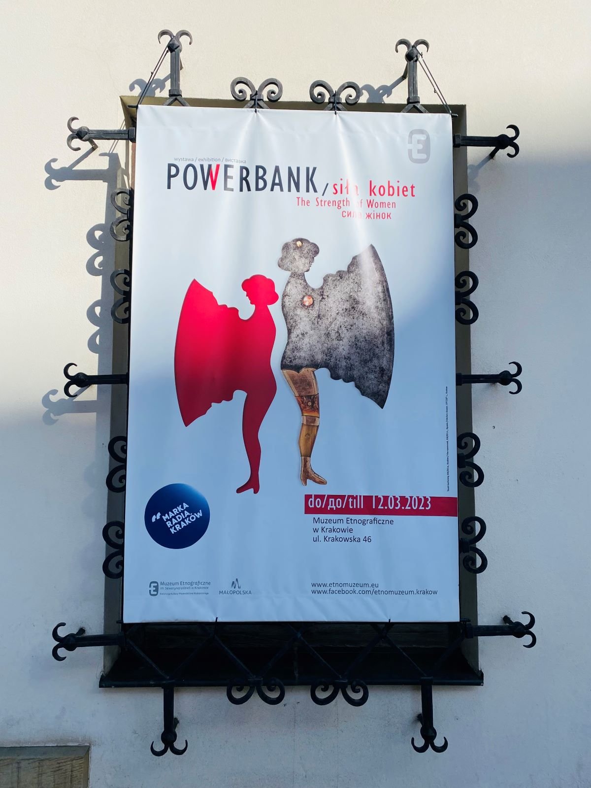 Powerbank to przestrzeń pozyskiwania i pomnażania energii. Kiedyś w przestrzeniach wystawowych znajdował się oddział banku, dziś to nowe miejsce mocy. Zamiast kredytów, lokat i rachunków, muzeum prezentuje poruszające wyobraźnię przedmioty. Każdy z nich może być punktem wyjścia opowieści o kobietach na różne sposoby zamieszanych w dzieje Muzeum Etnograficznego w Krakowie. W miejscu, gdzie stał bankomat, kwitną zioła. Ze ścian skarbca spogląda kilkadziesiąt kobiecych wizerunków. W dawnym pokoju socjalnym brzmią kobiece głosy.