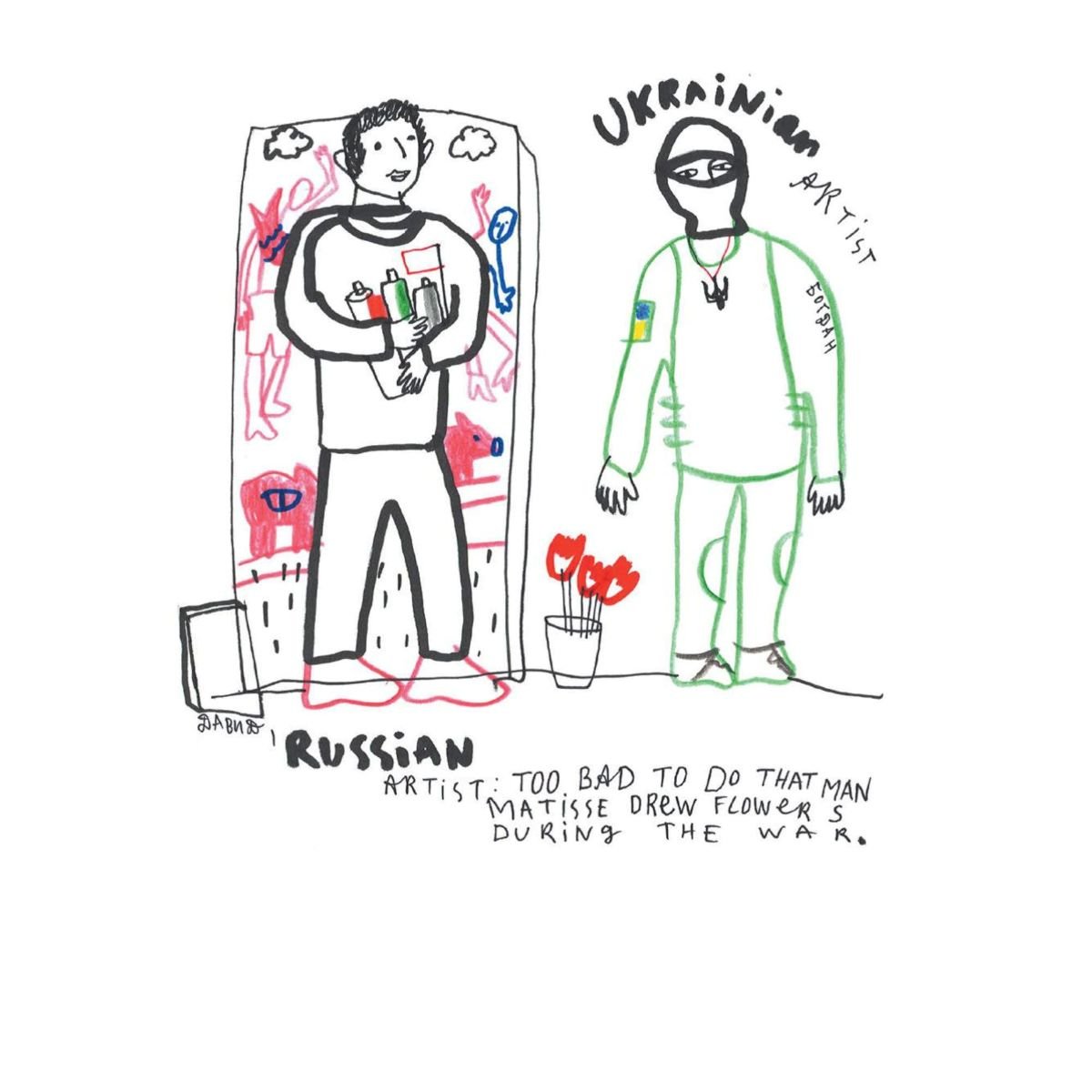 Artystka rejestruje dramatyczne wydarzenia z dystansem i chłodem naukowca badającego system, a może raczej różne rozpoznawalne systemy: prawne, edukacyjne, kolonialne, konsumpcyjne, systemy przemocy. Włącza się w obecne dyskursy, wywołując niejednokrotnie niemały ferment. Rysunki powstałe po 24 lutego 2022 roku często stanowią refleksję nad relacjami kulturowymi między Rosją a Ukrainą, wychodzą poza zapis wojennych realiów, szukając głębszych odniesień w historii i kulturze obu narodów, zwracają uwagę na kolonializm i imperializm Rosji.