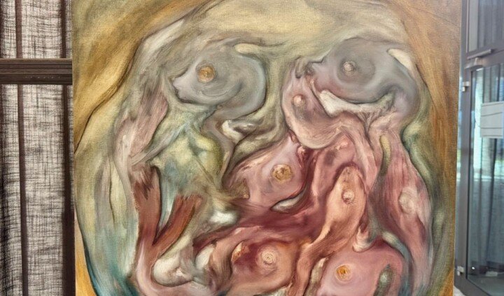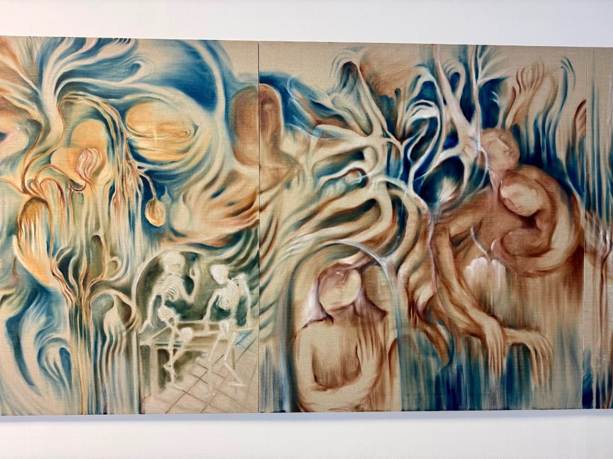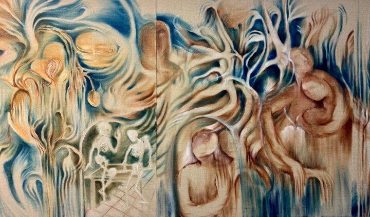 Sana Shahmuradova Tanska (1996 r.) wykorzystuje w swoich kompozycjach malarskich temat traumy międzypokoleniowej oraz motywy ze snów jako narzędzia nawiązywania kontaktu i komunikacji z przodkami. Malarka używa materiałów takich jak drewno, juta, płótno i farby olejne. Charakterystyczny język wizualny artystki, oparty na płynnych, organicznych liniach i świetlistych kolorach, przywołuje oniryczne, jak z mitów pejzaże, w których postacie stapiają się z otoczeniem. Czerpiąc z historii osobistej i reagując na aktualną sytuację Ukrainy, jej prace stają się nośnikami zarówno indywidualnego, jak i zbiorowego doświadczenia oraz podkreślają przemoc i okrucieństwa popełniane na ludności cywilnej i przyrodzie Ukrainy przez państwo agresora – Rosję.