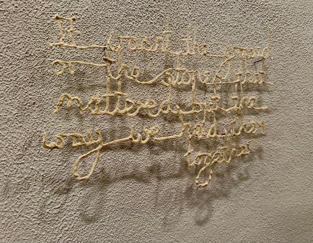 Prezentowana wystawa to osobista opowieść o pamięci, traumie, stracie i próbie rekonstrukcji tego, co zostało zniszczone i utracone. Twórczość artystki dotyka osobistej historii oraz ponadpokoleniowych doświadczeń – od przemilczanego żydowskiego pochodzenia jej dziadka, przez dramat uchodźstwa i Zagłady, aż po współczesne refleksje na temat przynależności i znaczenia „domu”.