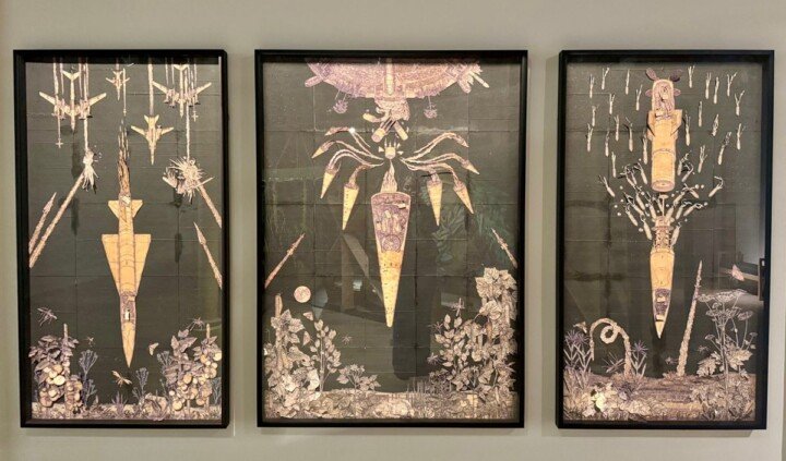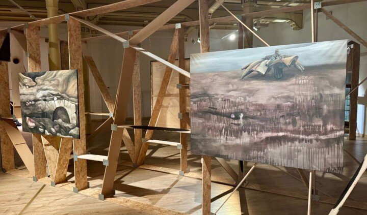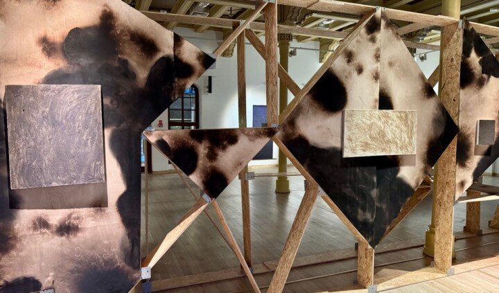 Ważnym elementem wystawy jest mapa Ukrainy. Dzięki niej widzowie i widzki poznają tereny zagrabione lub odzyskane, miejsca, z których twórczynie i twórcy czerpią inspiracje i do których odwołują się w swoich pracach. Narrację o zniszczeniu i odrodzeniu wzmacnia zastosowanie w architekturze wystawy techniki opalania drewna, służącej jego konserwacji. W ten sposób motyw palenia ukazany jest nie tylko jako siła niszczycielska, ale i metoda hartowania ekosystemów.