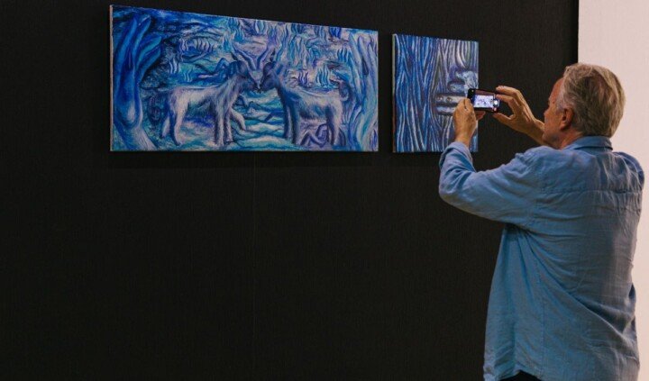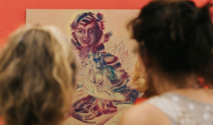 „Na pierwszy rzut oka dominują tu kolory, bajkowa intensywność i dziecinna estetyka, to szybko okazuje się, że wesoło jest tylko z pozoru. Kolor staje się zasłoną, za którą kryje się niepokój, groteska i przewrotna zabawa formą. W świecie tych obrazów nic nie jest do końca oczywiste ani niewinne. Postaci zdają się wykraczać poza granice tożsamości – są zarazem ludźmi i zwierzętami, dziećmi i upiorami, stworzeniami z kreskówek i mitologicznymi hybrydami. Patrzą na nas wielkimi oczami – niektóre z rozczuleniem, inne z wyraźną drwiną. Malarstwo Małgorzaty Wielek wciąga nas w świat, w którym wszystko może się zdarzyć. Zwierzęta mówią ludzkim głosem, a śmiech niekiedy przechodzi w krzyk. Na tle psychodelicznych pejzaży, falujących niebios pełnych oczu i rąk, zaczynamy tracić orientację: co tu jest snem, a co już staje się koszmarem.”