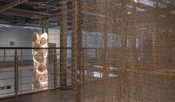 Wystawa zaskakująca, bo prezentująca nieznane szerzej dzieła nawiązujące do tkania, splatania i innych technik włókienniczych. Zmysłowa, bo pokazująca efekty eksperymentów z różnymi materiałami – od ziemi z Meksyku, przez kamienie z Birmy po bawełnę z Indii czy jedwab z Tajlandii. Medytacyjna, bo opowiada o kunszcie jako formie wyciszenia i podróży w głąb siebie i dodatkowo zaprezentowana w pofabrycznych wnętrzach dawnych zakładów bawełnianych, które stanowią jej idealne tło.